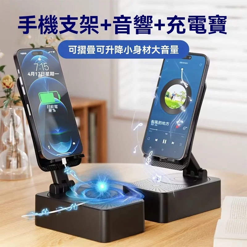 15分鐘前一機多用超省心懶人福音 三合一旋轉手機支架+快充行動電源+藍牙音響隨身多功能數碼神器 - 【品質之選】1入組-NT$998